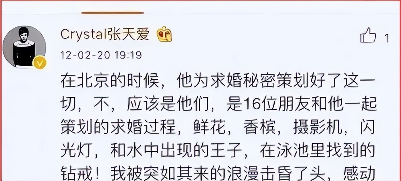 更甚至在巴厘岛的海边,他还向自己的前女友求婚了,后来张天爱解释说,被突如其来的浪漫冲昏了头,所以答应了求婚。更多的是张天爱在冲动下做下的决定。